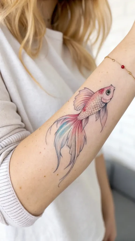 A minimalist watercolor betta tattoo is ideal for those who want a subtle yet striking design that reflects their personal style.