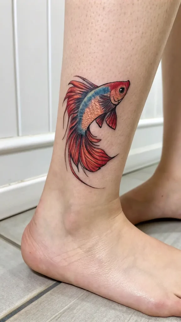 Small Betta Fish Ankle Tattoo