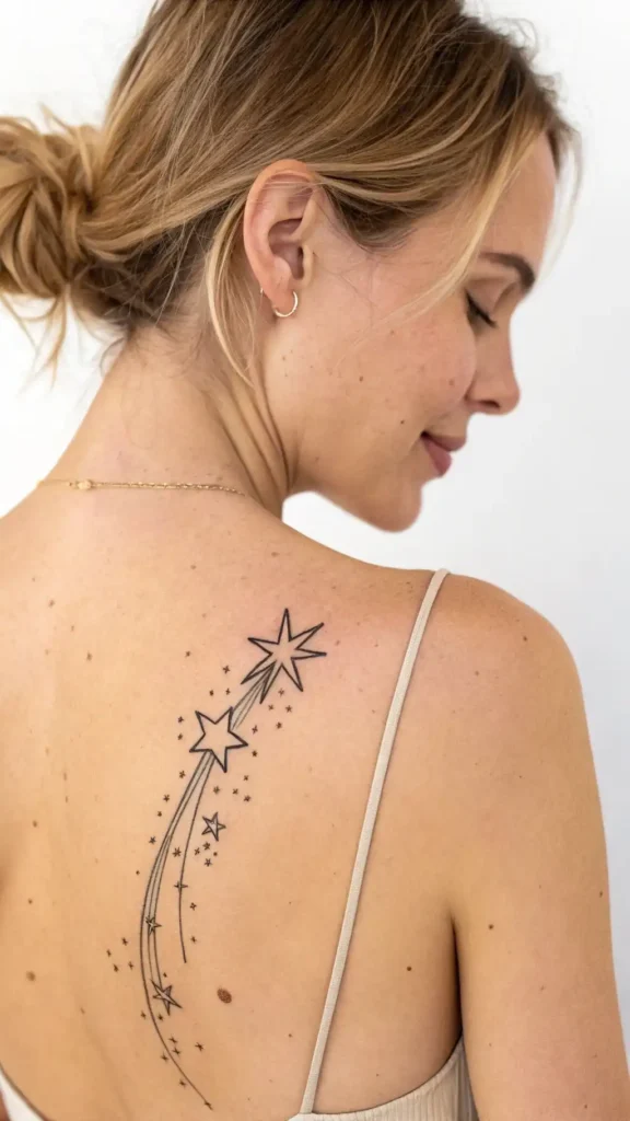 Incorporating a delicate shooting star into your tattoo design can add a touch of whimsy and magic.