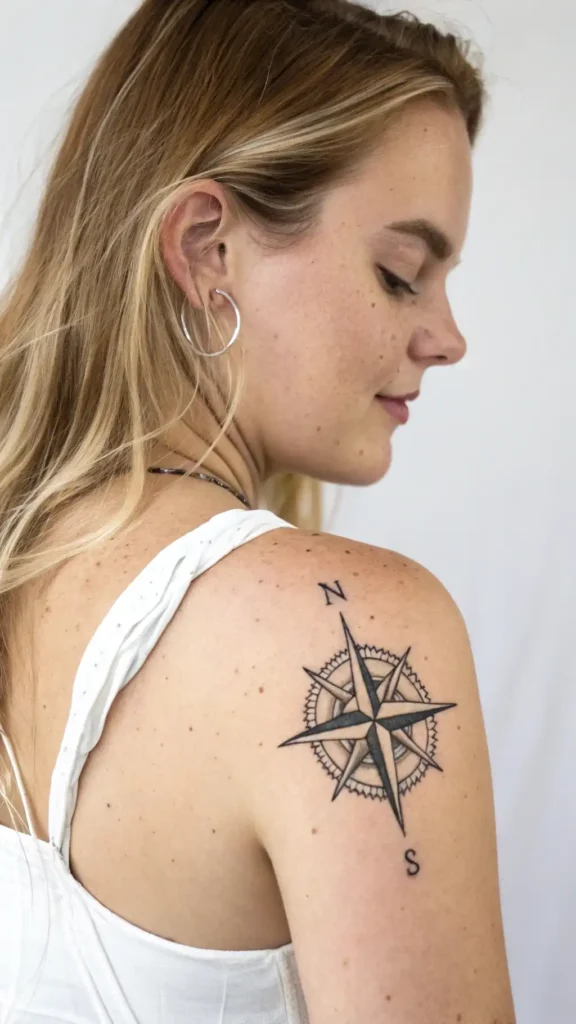 Within the domain of star tattoos, a unique compass star tattoo offers a powerful symbol of guidance and direction.