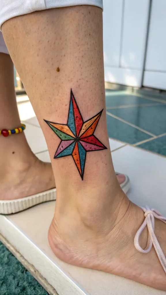 Vibrant Nautical Star Tattoo