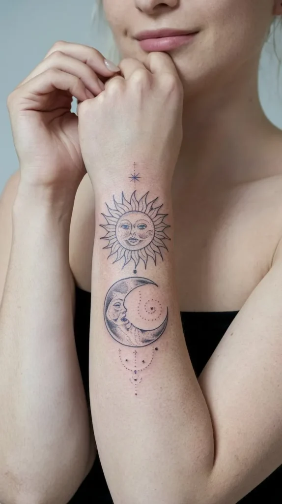 In a sun and moon tattoo, you can represent this harmony of duality by combining the two symbols in a way that reflects your personal connection to their energies.